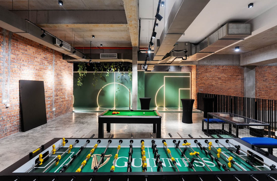 3. Friendly competition upstairs in the Play Zone, featuring foosball, table football, and a pool table — perfect for settling scores with friends.